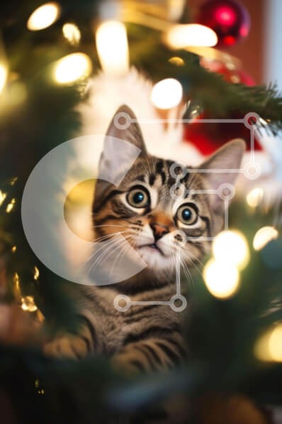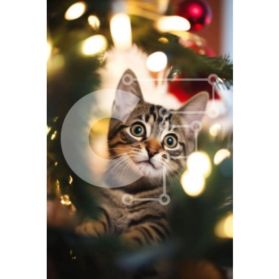 Υπάρχει δυνατότητα προσωποποίησης με δική σας φωτογραφία και προσαρμογής διαστάσεων κατόπιν παραγγελίας. Το συγεκεριμενο Puzzle 10x10 cm – 25 κομμ παρουσιαζει Αυτή η εικόνα δείχνει μια μικρή γάτα που κάθεται στη μέση ενός χριστουγεννιάτικου δέντρου, κοιτάζοντας έξω με περιέργεια. Τα μάτια του είναι ορθάνοιχτα καθώς κοιτάζει προς την κάμερα, δείχνοντας την περιέργεια και το παιχνίδι του. Η γάτα περ