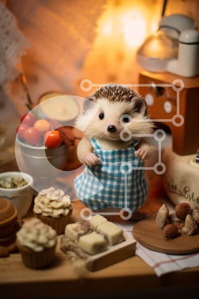 Υπάρχει δυνατότητα προσωποποίησης με δική σας φωτογραφία και προσαρμογής διαστάσεων κατόπιν παραγγελίας. Το συγεκεριμενο Puzzle 10x10 cm – 25 κομμ παρουσιαζει Η εικόνα δείχνει έναν μικρό σκαντζόχοιρο να στέκεται μπροστά από διάφορα είδη διατροφής, όπως cupcakes, μπισκότα και άλλα επιδόρπια. Υπάρχει επίσης μια ποικιλία από καρυκεύματα στο τραπέζι, τα οποία θα μπορούσαν να χρησιμοποιηθούν για την πρ
