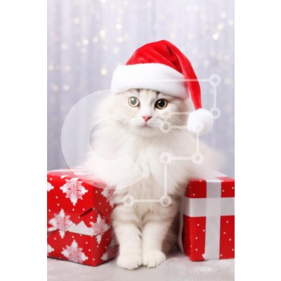 Υπάρχει δυνατότητα προσωποποίησης με δική σας φωτογραφία και προσαρμογής διαστάσεων κατόπιν παραγγελίας. Το συγεκεριμενο Puzzle 10x10 cm – 25 κομμ παρουσιαζει Μια αφράτη γάτα που φορά ένα εορταστικό κόκκινο καπέλο του Άγιου Βασίλη κάθεται δίπλα σε δύο όμορφα τυλιγμένα χριστουγεννιάτικα δώρα. Το φόντο είναι διακοσμημένο με λαμπερά φώτα, ενισχύοντας το πνεύμα των γιορτών. Τα μεγάλα, εκφραστικά μάτια