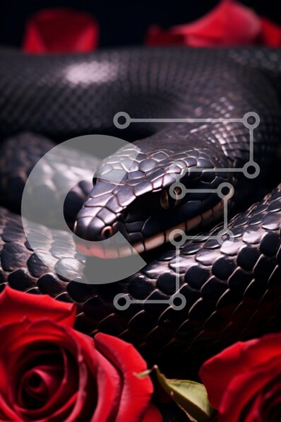 Υπάρχει δυνατότητα προσωποποίησης με δική σας φωτογραφία και προσαρμογής διαστάσεων κατόπιν παραγγελίας. Το συγεκεριμενο Puzzle 10x10 cm – 25 κομμ παρουσιαζει Αυτή η εικόνα παρουσιάζει ένα κοντινό πλάνο ενός μαύρου φιδιού που είναι συνυφασμένο με κόκκινα τριαντάφυλλα. Τα λέπια του φιδιού λάμπουν κάτω από το φως, εμφανίζοντας περίπλοκα σχέδια. Ο συνδυασμός του φιδιού και των τριαντάφυλλων δημιουργε