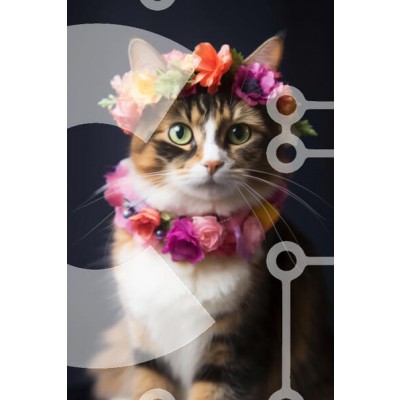 Υπάρχει δυνατότητα προσωποποίησης με δική σας φωτογραφία και προσαρμογής διαστάσεων κατόπιν παραγγελίας. Το συγεκεριμενο Puzzle 10x10 cm – 25 κομμ παρουσιαζει Η εικόνα δείχνει μια αξιολάτρευτη γάτα που φορά ένα λουλουδένιο στεφάνι στο λαιμό της. Το σαγηνευτικό βλέμμα της γάτας τραβά την προσοχή και τα λουλούδια προσθέτουν μια πινελιά κομψότητας στη σκηνή. Ένα μοναδικό Puzzle 10x10 cm – 25 κομμπου