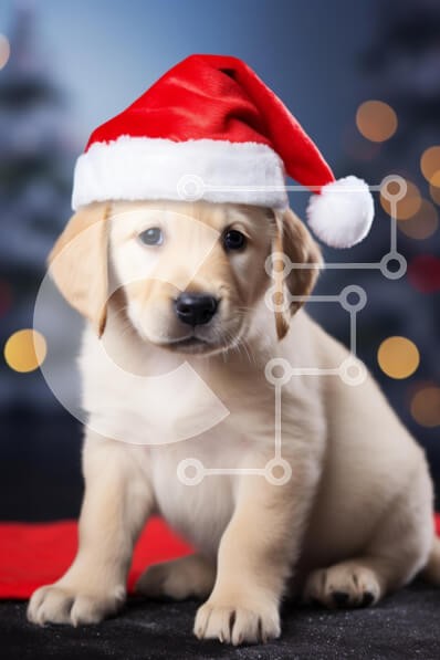 Υπάρχει δυνατότητα προσωποποίησης με δική σας φωτογραφία και προσαρμογής διαστάσεων κατόπιν παραγγελίας. Το συγεκεριμενο Puzzle 10x10 cm – 25 κομμ παρουσιαζει Η εικόνα απεικονίζει ένα αξιολάτρευτο κουτάβι Golden Retriever που φορά ένα εορταστικό κόκκινο καπέλο του Άγιου Βασίλη. Το κουτάβι κάθεται σε μια απαλή κόκκινη κουβέρτα με θολό φόντο που περιλαμβάνει νότες από χριστουγεννιάτικα δέντρα και λα