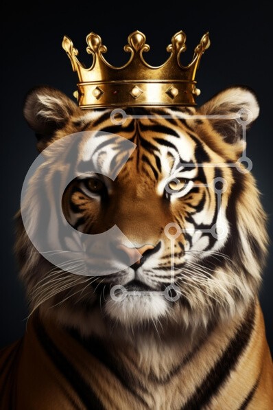 Υπάρχει δυνατότητα προσωποποίησης με δική σας φωτογραφία και προσαρμογής διαστάσεων κατόπιν παραγγελίας. Το συγεκεριμενο Puzzle 10x10 cm – 25 κομμ παρουσιαζει Αυτή η εικόνα παρουσιάζει μια μεγαλοπρεπή τίγρη με ένα χρυσό στέμμα τοποθετημένο στο κεφάλι της, που δείχνει μια άγρια αλλά βασιλική έκφραση. Οι εντυπωσιακές πορτοκαλί και μαύρες ρίγες της τίγρης εμφανίζονται έντονα σε σκούρο φόντο, υπογρα