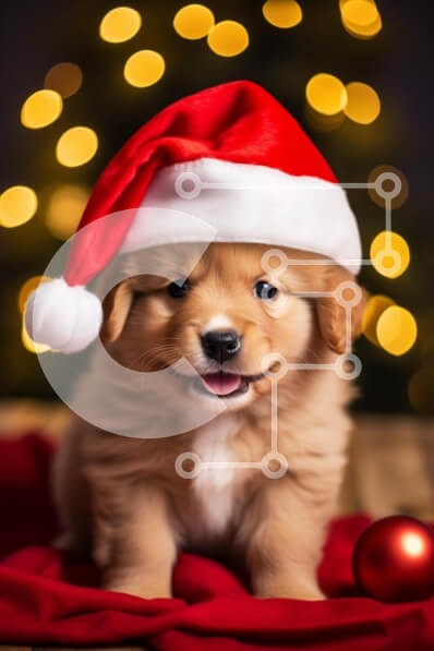 Υπάρχει δυνατότητα προσωποποίησης με δική σας φωτογραφία και προσαρμογής διαστάσεων κατόπιν παραγγελίας. Το συγεκεριμενο Puzzle 10x10 cm – 25 κομμ παρουσιαζει Αυτή η εικόνα παρουσιάζει ένα αξιολάτρευτο κουτάβι που φορά ένα έντονο κόκκινο χριστουγεννιάτικο καπέλο, που κάθεται σε μια απαλή κόκκινη κουβέρτα. Στο βάθος, υπάρχουν απαλά, ζεστά φώτα bokeh που δημιουργούν μια γιορτινή ατμόσφαιρα, που θυμί