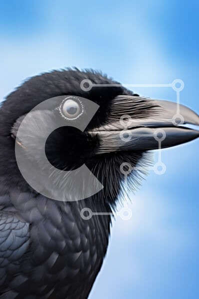Υπάρχει δυνατότητα προσωποποίησης με δική σας φωτογραφία και προσαρμογής διαστάσεων κατόπιν παραγγελίας. Το συγεκεριμενο Puzzle 10x10 cm – 25 κομμ παρουσιαζει Αυτή η εικόνα παρουσιάζει ένα κοντινό πλάνο ενός μαύρου πουλιού, πιθανώς ενός κορακιού, με εντυπωσιακές λεπτομέρειες στα φτερά και το μάτι του. Το φόντο είναι απαλό μπλε, δημιουργώντας μια αντίθεση που τονίζει τις περίπλοκες υφές του φτερώμα