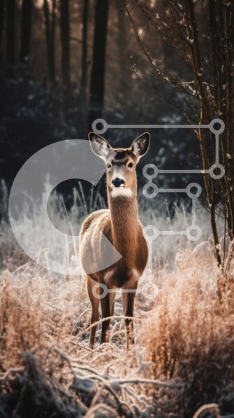 Υπάρχει δυνατότητα προσωποποίησης με δική σας φωτογραφία και προσαρμογής διαστάσεων κατόπιν παραγγελίας. Το συγεκεριμενο Puzzle 10x10 cm – 25 κομμ παρουσιαζει Αυτή η εικόνα είναι ενός ελαφιού που στέκεται σε ένα παγωμένο δάσος και κοιτάζει απευθείας την κάμερα με μια περίεργη έκφραση. Η γούνα του ελαφιού είναι χοντρή και αφράτη και έχει μεγάλα, εντυπωσιακά κέρατα. Ο παγετός στο έδαφος και τα δέντρ