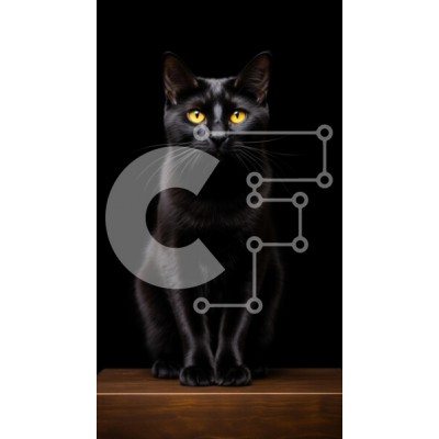 Υπάρχει δυνατότητα προσωποποίησης με δική σας φωτογραφία και προσαρμογής διαστάσεων κατόπιν παραγγελίας. Το συγεκεριμενο Puzzle 10x10 cm – 25 κομμ παρουσιαζει Η εικόνα παρουσιάζει μια εντυπωσιακή μαύρη γάτα με έντονα κίτρινα μάτια, που κάθεται βασιλικά σε μια ξύλινη επιφάνεια σε ένα συμπαγές μαύρο φόντο. Η γυαλιστερή γούνα της γάτας έρχεται σε όμορφη αντίθεση με το σκούρο σκηνικό, αναδεικνύοντας τ