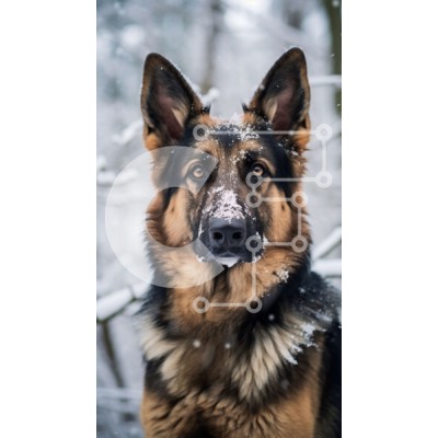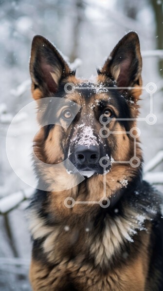 Υπάρχει δυνατότητα προσωποποίησης με δική σας φωτογραφία και προσαρμογής διαστάσεων κατόπιν παραγγελίας. Το συγεκεριμενο Puzzle 10x10 cm – 25 κομμ παρουσιαζει Αυτή η εικόνα παρουσιάζει έναν Γερμανικό Ποιμενικό σκύλο να στέκεται στο χιόνι. Ο σκύλος έχει μαύρο και καφέ τρίχωμα, με καφέ ρύγχος και καστανά μάτια. Φοράει γιακά με ετικέτα. Ο σκύλος κοιτάζει κατευθείαν την κάμερα με μια περίεργη έκφραση.