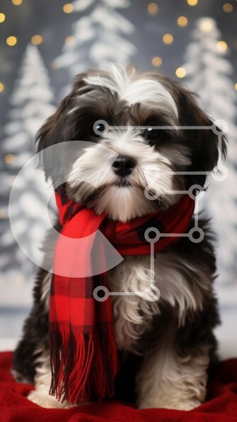 Υπάρχει δυνατότητα προσωποποίησης με δική σας φωτογραφία και προσαρμογής διαστάσεων κατόπιν παραγγελίας. Το συγεκεριμενο Puzzle 10x10 cm – 25 κομμ παρουσιαζει Αυτή η εικόνα παρουσιάζει έναν αξιολάτρευτο σκύλο που κάθεται σε ένα ζεστό περιβάλλον, τυλιγμένο με ένα κόκκινο και μαύρο καρό κασκόλ. Ο σκύλος έχει ένα χνουδωτό τρίχωμα με ένα μείγμα ασπρόμαυρης γούνας και τα μεγάλα, εκφραστικά μάτια του δί