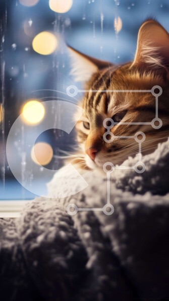 Υπάρχει δυνατότητα προσωποποίησης με δική σας φωτογραφία και προσαρμογής διαστάσεων κατόπιν παραγγελίας. Το συγεκεριμενο Puzzle 10x10 cm – 25 κομμ παρουσιαζει Αυτή η εικόνα παρουσιάζει μια γάτα ξαπλωμένη σε μια κουβέρτα δίπλα σε ένα παράθυρο μια βροχερή μέρα. Η γάτα κοιμάται ήσυχα κοιτάζοντας έξω από το παράθυρο. Το φόντο είναι σκόπιμα θολό, προβάλλοντας τα φώτα και τα δέντρα έξω, δημιουργώντας μι