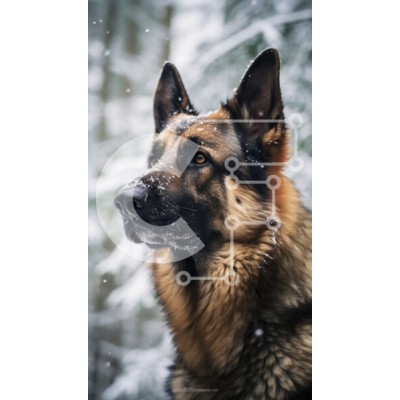 Υπάρχει δυνατότητα προσωποποίησης με δική σας φωτογραφία και προσαρμογής διαστάσεων κατόπιν παραγγελίας. Το συγεκεριμενο Puzzle 10x10 cm – 25 κομμ παρουσιαζει Αυτή η εικόνα παρουσιάζει έναν Γερμανικό Ποιμενικό σκύλο να στέκεται ψηλά στο χιόνι. Ο σκύλος έχει ένα καφέ και μαύρο τρίχωμα, με σοβαρή έκφραση και ψηλά αυτιά. Το φόντο δείχνει ένα χιονισμένο δάσος με ψηλά δέντρα, δημιουργώντας ένα γαλήνιο