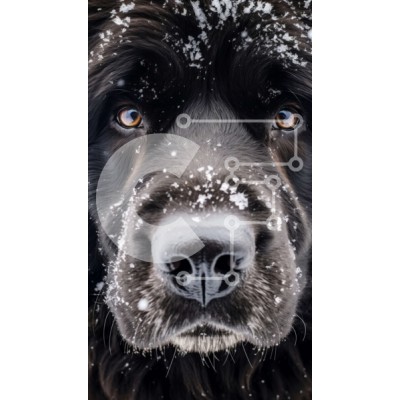 Υπάρχει δυνατότητα προσωποποίησης με δική σας φωτογραφία και προσαρμογής διαστάσεων κατόπιν παραγγελίας. Το συγεκεριμενο Puzzle 10x10 cm – 25 κομμ παρουσιαζει Αυτή η εικόνα δείχνει ένα μεγάλο μαύρο σκυλί με ένα παχύ τρίχωμα γούνας. Η γούνα του σκύλου είναι πλήρως καλυμμένη με χιόνι, υποδεικνύοντας ότι είναι σε εξωτερικό χώρο το χειμώνα. Ο σκύλος έχει εκφραστικά καστανά μάτια και καστανή μύτη, προσ