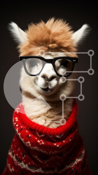 Υπάρχει δυνατότητα προσωποποίησης με δική σας φωτογραφία και προσαρμογής διαστάσεων κατόπιν παραγγελίας. Το συγεκεριμενο Puzzle 10x10 cm – 25 κομμ παρουσιαζει Αυτή η εικόνα παρουσιάζει μια παιχνιδιάρικη λάμα που φοράει μεγάλα μαύρα γυαλιά και ένα ζεστό κόκκινο πουλόβερ με σχέδιο με σχέδια. Η λάμα έχει ένα μοναδικό χτένισμα που μοιάζει με χνουδωτή, στυλιζαρισμένη εμφάνιση. Το φόντο είναι σκούρο, επ