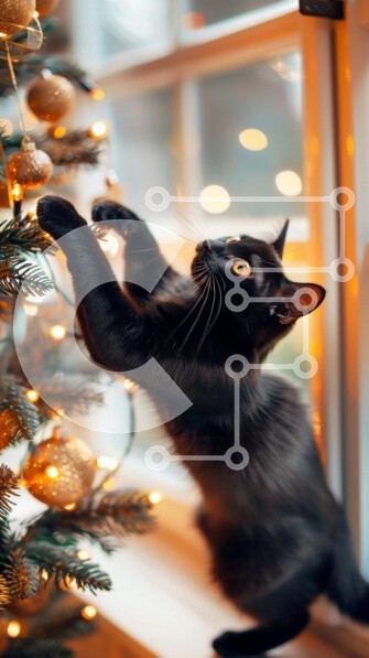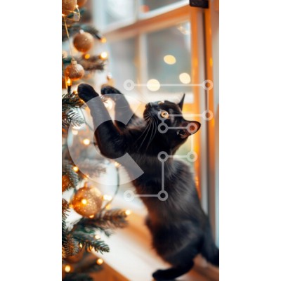 Υπάρχει δυνατότητα προσωποποίησης με δική σας φωτογραφία και προσαρμογής διαστάσεων κατόπιν παραγγελίας. Το συγεκεριμενο Puzzle 10x10 cm – 25 κομμ παρουσιαζει Η εικόνα απεικονίζει μια μαύρη γάτα να απλώνεται παιχνιδιάρικα προς ένα στολισμένο χριστουγεννιάτικο δέντρο. Το δέντρο είναι στολισμένο με χρυσά στολίδια και λαμπερά φώτα, δημιουργώντας μια γιορτινή ατμόσφαιρα. Το περίεργο βλέμμα και η παιχν