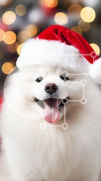 Υπάρχει δυνατότητα προσωποποίησης με δική σας φωτογραφία και προσαρμογής διαστάσεων κατόπιν παραγγελίας. Το συγεκεριμενο Puzzle 10x10 cm – 25 κομμ παρουσιαζει Αυτή η εικόνα απεικονίζει έναν αξιολάτρευτο λευκό σκύλο που φορά ένα εορταστικό κόκκινο καπέλο του Άγιου Βασίλη, σε ένα θολό φόντο από τα φώτα των γιορτών. Η αφράτη γούνα του σκύλου είναι περιποιημένη και έχει μια χαρούμενη έκφραση με τη γλώ