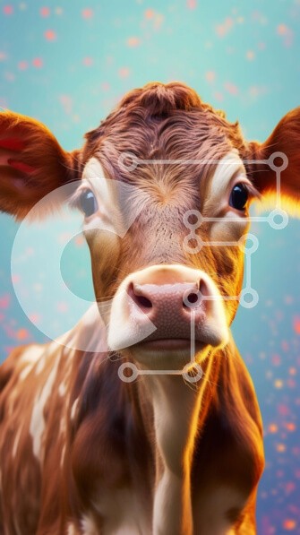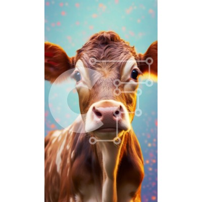 Υπάρχει δυνατότητα προσωποποίησης με δική σας φωτογραφία και προσαρμογής διαστάσεων κατόπιν παραγγελίας. Το συγεκεριμενο Puzzle 10x10 cm – 25 κομμ παρουσιαζει Αυτή η εικόνα είναι ένα κοντινό πλάνο μιας καφέ αγελάδας με λευκές κηλίδες στο πρόσωπο και το σώμα της. Η αγελάδα κοιτάζει απευθείας την κάμερα με μεγάλα καστανά μάτια και έχει μια έκφραση περιεχομένου. Το φόντο διαθέτει ένα πολύχρωμο και αφ