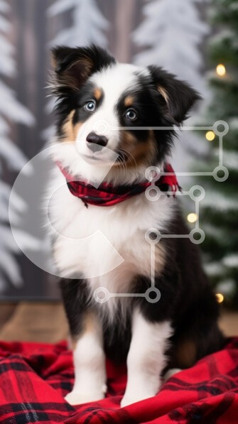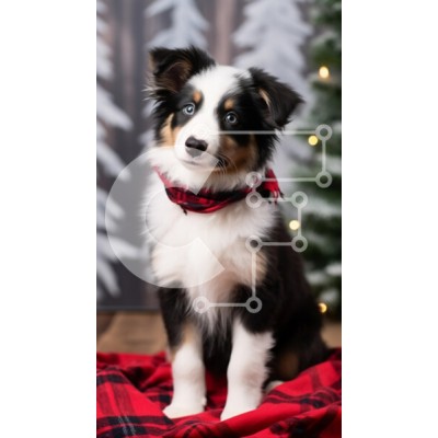 Υπάρχει δυνατότητα προσωποποίησης με δική σας φωτογραφία και προσαρμογής διαστάσεων κατόπιν παραγγελίας. Το συγεκεριμενο Puzzle 10x10 cm – 25 κομμ παρουσιαζει Αυτή η εικόνα απεικονίζει ένα αξιολάτρευτο κουτάβι που κάθεται σε μια κόκκινη καρό κουβέρτα, με ένα εορταστικό φόντο από στυλιζαρισμένα λευκά δέντρα και λαμπερά φώτα. Το κουτάβι έχει εντυπωσιακά μπλε μάτια και ένα ασπρόμαυρο παλτό, που συμπλ