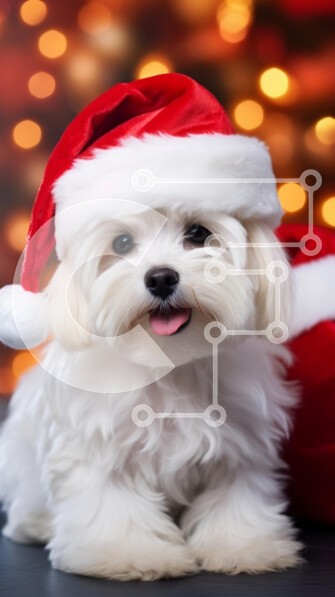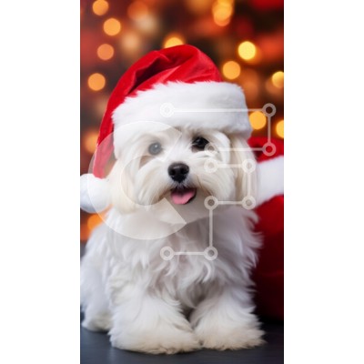 Υπάρχει δυνατότητα προσωποποίησης με δική σας φωτογραφία και προσαρμογής διαστάσεων κατόπιν παραγγελίας. Το συγεκεριμενο Puzzle 10x10 cm – 25 κομμ παρουσιαζει Η εικόνα δείχνει ένα χνουδωτό λευκό σκυλί που φορά ένα εορταστικό κόκκινο καπέλο του Άγιου Βασίλη, με ένα θολό φόντο από ζεστά, λαμπερά φώτα που προκαλούν ένα χαρούμενο πνεύμα διακοπών. Ο σκύλος κάθεται και κοιτάζει κατευθείαν την κάμερα, με
