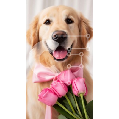 Υπάρχει δυνατότητα προσωποποίησης με δική σας φωτογραφία και προσαρμογής διαστάσεων κατόπιν παραγγελίας. Το συγεκεριμενο Puzzle 10x10 cm – 25 κομμ παρουσιαζει Η εικόνα απεικονίζει ένα σκυλί Golden Retriever που κρατά πολλά ροζ τριαντάφυλλα στο στόμα του. Ο σκύλος χαμογελά και φαίνεται να απολαμβάνει τα λουλούδια, που είναι τοποθετημένα μπροστά του. Θα μπορούσε να είναι μια στοργική χειρονομία από