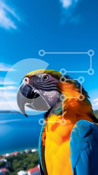 Υπάρχει δυνατότητα προσωποποίησης με δική σας φωτογραφία και προσαρμογής διαστάσεων κατόπιν παραγγελίας. Το συγεκεριμενο Puzzle 10x10 cm – 25 κομμ παρουσιαζει Αυτή η εικόνα παρουσιάζει έναν πολύχρωμο παπαγάλο σκαρφαλωμένο στην κορυφή μιας υπερυψωμένης πλατφόρμας με θέα στο νερό. Το πουλί απολαμβάνει τη θέα καθώς σκαρφαλώνει στην άκρη της πλατφόρμας, κοιτάζοντας προς τον ωκεανό. Είναι πιθανό ότι το