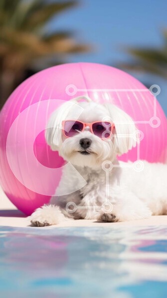 Υπάρχει δυνατότητα προσωποποίησης με δική σας φωτογραφία και προσαρμογής διαστάσεων κατόπιν παραγγελίας. Το συγεκεριμενο Puzzle 10x10 cm – 25 κομμ παρουσιαζει Η εικόνα δείχνει ένα μικρό λευκό σκυλί που φοράει ροζ γυαλιά ηλίου και είναι ξαπλωμένο στο έδαφος δίπλα σε μια φουσκωτή ροζ μπάλα. Ο σκύλος φαίνεται να απολαμβάνει την ώρα του στην πισίνα, εμφανίζεται χαλαρός και άνετος στο περιβάλλον του. Ά