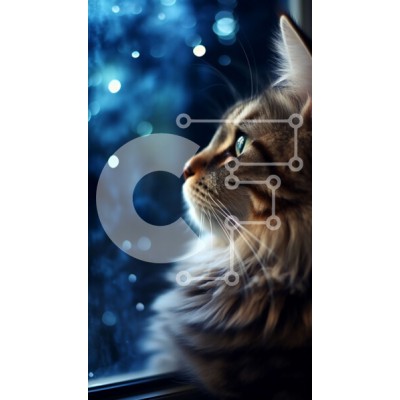 Υπάρχει δυνατότητα προσωποποίησης με δική σας φωτογραφία και προσαρμογής διαστάσεων κατόπιν παραγγελίας. Το συγεκεριμενο Puzzle 10x10 cm – 25 κομμ παρουσιαζει Αυτή η εικόνα παρουσιάζει μια μακρυμάλλη γάτα που κάθεται δίπλα σε ένα παράθυρο και κοιτάζει τον νυχτερινό ουρανό. Το τρίχωμα της γάτας είναι μακρύ και χνουδωτό και τα μάτια της είναι λαμπερά πράσινα. Το φόντο είναι σκούρο μπλε ή μαύρο, με σ