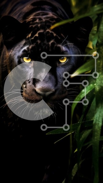 Υπάρχει δυνατότητα προσωποποίησης με δική σας φωτογραφία και προσαρμογής διαστάσεων κατόπιν παραγγελίας. Το συγεκεριμενο Puzzle 10x10 cm – 25 κομμ παρουσιαζει Αυτή η εικόνα δείχνει έναν μαύρο πάνθηρα στη ζούγκλα. Ο πάνθηρας έχει γυαλιστερή και κομψή γούνα με μακριά και αιχμηρά νύχια. Το φύλλωμα της ζούγκλας είναι πλούσιο και πράσινο, με αμπέλια και φύλλα να καλύπτουν τα δέντρα και το έδαφος. Τα κί