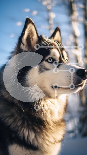 Υπάρχει δυνατότητα προσωποποίησης με δική σας φωτογραφία και προσαρμογής διαστάσεων κατόπιν παραγγελίας. Το συγεκεριμενο Puzzle 10x10 cm – 25 κομμ παρουσιαζει Αυτή η εικόνα παρουσιάζει έναν σκύλο Husky της Σιβηρίας να στέκεται στο χιόνι. Ο σκύλος έχει ασπρόμαυρο παλτό και εντυπωσιακά μπλε μάτια. Κοιτάζει ευθεία μπροστά με μια σοβαρή έκφραση στο πρόσωπό του. Στο βάθος, υπάρχουν δέντρα και χιονισμέν