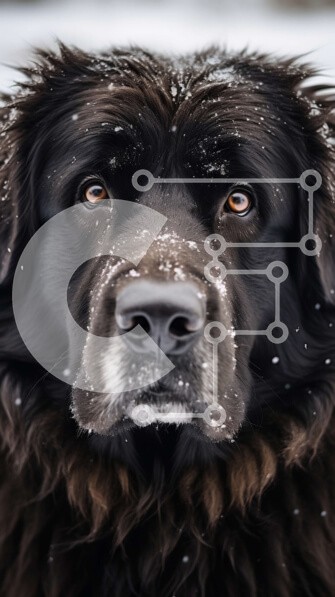 Υπάρχει δυνατότητα προσωποποίησης με δική σας φωτογραφία και προσαρμογής διαστάσεων κατόπιν παραγγελίας. Το συγεκεριμενο Puzzle 10x10 cm – 25 κομμ παρουσιαζει Αυτή η εικόνα παρουσιάζει ένα μεγάλο μαύρο σκυλί με χοντρό τρίχωμα γούνας, που στέκεται στο χιόνι. Η γούνα του σκύλου είναι καλυμμένη με νιφάδες χιονιού και έχει καστανά και λαμπερά μάτια. Το ρύγχος του είναι μακρύ και τα αυτιά δισκέτα. Το σ