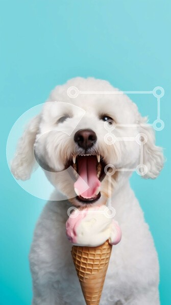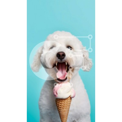 Υπάρχει δυνατότητα προσωποποίησης με δική σας φωτογραφία και προσαρμογής διαστάσεων κατόπιν παραγγελίας. Το συγεκεριμενο Puzzle 10x10 cm – 25 κομμ παρουσιαζει Αυτή η εικόνα παρουσιάζει έναν λευκό σκύλο με ένα ροζ χωνάκι παγωτού στο στόμα του να στέκεται μπροστά σε ένα μπλε φόντο. Ο σκύλος κοιτάζει στο πλάι, με τη γλώσσα του να βγαίνει ελαφρώς έξω από ενθουσιασμό. Ένα μοναδικό Puzzle 10x10 cm – 25
