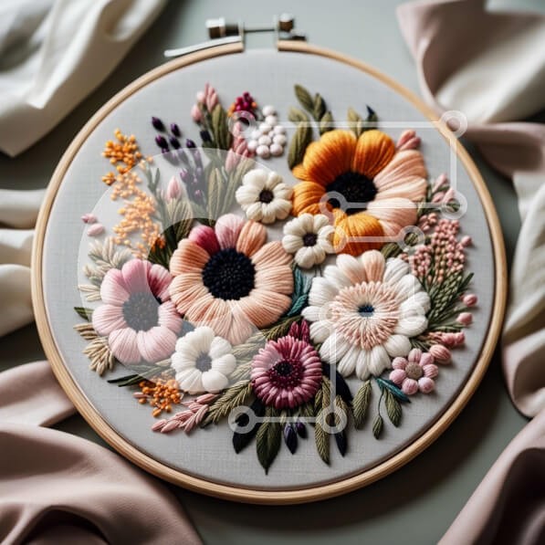 Υπάρχει δυνατότητα προσωποποίησης με δική σας φωτογραφία και προσαρμογής διαστάσεων κατόπιν παραγγελίας. Το συγεκεριμενο Puzzle 10x10 cm – 25 κομμ παρουσιαζει Αυτή η εικόνα δείχνει μια κοντινή άποψη ενός σχεδίου κεντήματος με λουλούδια. Το σχέδιο περιλαμβάνει διάφορα λουλούδια, όπως τριαντάφυλλα, μαργαρίτες και ηλίανθους, σε αποχρώσεις του ροζ, του κίτρινου και του πορτοκαλί. Τα λουλούδια είναι κε