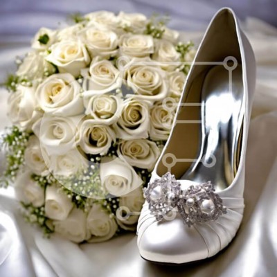 Υπάρχει δυνατότητα προσωποποίησης με δική σας φωτογραφία και προσαρμογής διαστάσεων κατόπιν παραγγελίας. Το συγεκεριμενο Puzzle 10x10 cm – 25 κομμ παρουσιαζει Αυτή η εικόνα δείχνει ένα ζευγάρι λευκά νυφικά παπούτσια τοποθετημένα πάνω από ένα εντυπωσιακό μπουκέτο τριαντάφυλλα, με μικρά μαργαριτάρια διάσπαρτα απαλά. Η ρύθμιση αποπνέει κομψότητα και ρομαντισμό, καθιστώντας την ιδανική για κάθε περιεχ