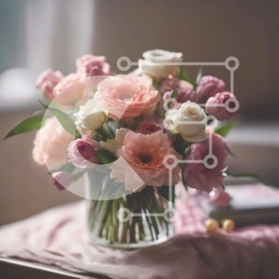 Υπάρχει δυνατότητα προσωποποίησης με δική σας φωτογραφία και προσαρμογής διαστάσεων κατόπιν παραγγελίας. Το συγεκεριμενο Puzzle 10x10 cm – 25 κομμ παρουσιαζει Αυτή η εικόνα παρουσιάζει ένα γυάλινο βάζο γεμάτο με ροζ και λευκά λουλούδια, τοποθετημένο σε ένα τραπέζι δίπλα σε ένα ανοιχτό παράθυρο. Ένα βιβλίο είναι επίσης παρόν στην εικόνα, προσθέτοντας στην αισθητική της σκηνής. Υποδηλώνει ότι τα λου