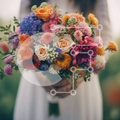Υπάρχει δυνατότητα προσωποποίησης με δική σας φωτογραφία και προσαρμογής διαστάσεων κατόπιν παραγγελίας. Το συγεκεριμενο Puzzle 10x10 cm – 25 κομμ παρουσιαζει Αυτή η εικόνα παρουσιάζει μια γυναίκα που κρατά ένα μπουκέτο με πολύχρωμα λουλούδια, πιθανώς για τον γάμο της. Το μπουκέτο αποτελείται από διάφορα είδη λουλουδιών, όπως τριαντάφυλλα, γαρίφαλα, μαργαρίτες και ηλίανθους, προσθέτοντας μια ζωντα