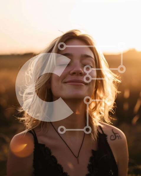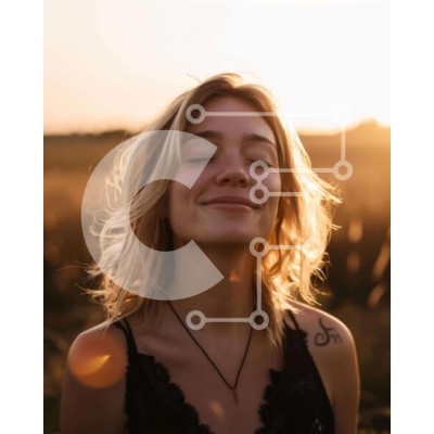 Υπάρχει δυνατότητα προσωποποίησης με δική σας φωτογραφία και προσαρμογής διαστάσεων κατόπιν παραγγελίας. Το συγεκεριμενο puzzle παρουσιαζει Η εικόνα δείχνει μια νεαρή γυναίκα να στέκεται στη μέση ενός ανοιχτού χωραφιού, με τα μάτια της κλειστά και να χαμογελά. Φαίνεται να απολαμβάνει το ηλιοβασίλεμα, το οποίο μπορεί να φανεί μέσα από τις ακτίνες του ήλιου καθώς κινούνται στον ουρανό. Υπάρχουν αρκετά τατουάζ ορατά