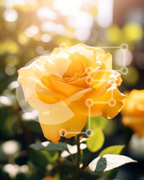 Υπάρχει δυνατότητα προσωποποίησης με δική σας φωτογραφία και προσαρμογής διαστάσεων κατόπιν παραγγελίας. Το συγεκεριμενο puzzle παρουσιαζει Η εικόνα δείχνει ένα ζωντανό κίτρινο τριαντάφυλλο σε πλήρη άνθηση που περιβάλλεται από καταπράσινο φύλλωμα. Ο ήλιος λάμπει μέσα από τα φύλλα, προσθέτοντας μια ζεστή λάμψη στη σκηνή. Άλλα λουλούδια διακρίνονται στο βάθος, υπονοώντας μια σύνθεση με λουλούδια. Ένα μοναδικό puzzl