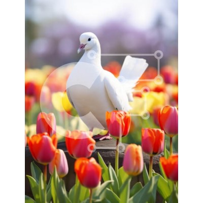 Υπάρχει δυνατότητα προσωποποίησης με δική σας φωτογραφία και προσαρμογής διαστάσεων κατόπιν παραγγελίας. Το συγεκεριμενο puzzle παρουσιαζει Ένα όμορφο λευκό περιστέρι στέκεται με χάρη ανάμεσα σε ζωηρές τουλίπες σε διάφορα χρώματα, συμπεριλαμβανομένων των αποχρώσεων του κόκκινου και του ροζ. Το απαλό φως του ήλιου ενισχύει τα λεπτά χαρακτηριστικά του περιστεριού και τις ζωηρές αποχρώσεις των λουλουδιών, δημιουργώντ