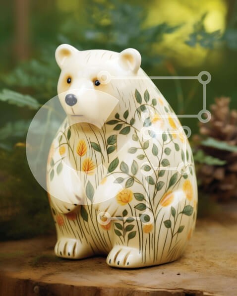 Υπάρχει δυνατότητα προσωποποίησης με δική σας φωτογραφία και προσαρμογής διαστάσεων κατόπιν παραγγελίας. Το συγεκεριμενο puzzle παρουσιαζει Αυτή η εικόνα παρουσιάζει ένα ειδώλιο λευκής αρκούδας που κάθεται πάνω από ένα παλιό κούτσουρο δέντρου. Το ειδώλιο είναι διακοσμημένο με λουλούδια και φύλλα, και η γύρω περιοχή είναι διάσπαρτη με κουκουνάρια, δημιουργώντας μια γοητευτική και ιδιότροπη σκηνή. Ένα μοναδικό puzz