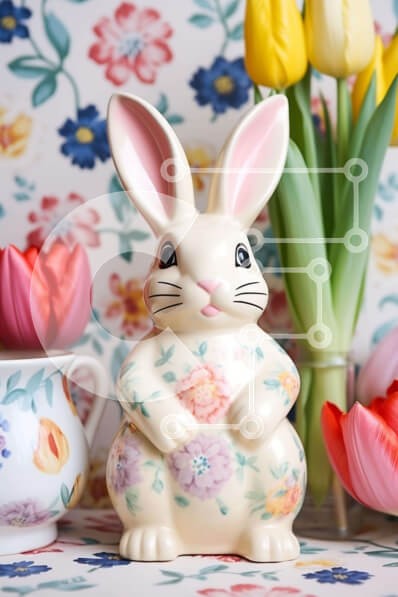 Υπάρχει δυνατότητα προσωποποίησης με δική σας φωτογραφία και προσαρμογής διαστάσεων κατόπιν παραγγελίας. Το συγεκεριμενο puzzle παρουσιαζει Αυτή η εικόνα παρουσιάζει ένα υπέροχο λευκό ειδώλιο κουνελιού τοποθετημένο μπροστά από μια πολύχρωμη οθόνη με τουλίπες και λουλούδια. Δίπλα στο ειδώλιο, είναι ορατό ένα τραπέζι με πολλά κύπελλα, δημιουργώντας μια ζεστή και φιλόξενη σκηνή. Ένα άδειο φλιτζάνι που τοποθετείται κο