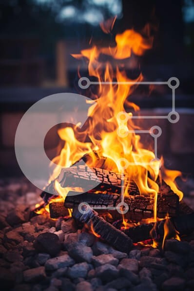 Υπάρχει δυνατότητα προσωποποίησης με δική σας φωτογραφία και προσαρμογής διαστάσεων κατόπιν παραγγελίας. Το συγεκεριμενο puzzle παρουσιαζει Αυτή η εικόνα είναι μια κοντινή όψη ενός λάκκου πυρκαγιάς με αναμμένα κούτσουρα και χόβολα. Ο λάκκος της φωτιάς είναι κατασκευασμένος από πέτρα και έχει μεταλλική σχάρα από πάνω. Οι φλόγες είναι πορτοκαλί και κίτρινες, τρεμοπαίζουν και χορεύουν στον άνεμο. Βράχοι περιβάλλουν τ