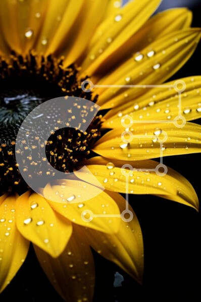 Υπάρχει δυνατότητα προσωποποίησης με δική σας φωτογραφία και προσαρμογής διαστάσεων κατόπιν παραγγελίας. Το συγεκεριμενο puzzle παρουσιαζει Αυτή η εικόνα παρουσιάζει ένα κοντινό πλάνο ενός ηλίανθου, που δείχνει τα ζωηρά κίτρινα πέταλα και το σκοτεινό κέντρο του. Τα πέταλα είναι στολισμένα με σταγόνες νερού, που γυαλίζουν στο φως, προσθέτοντας ένα αναζωογονητικό στοιχείο στην λουλουδάτη εικόνα. Το φόντο είναι σκούρ