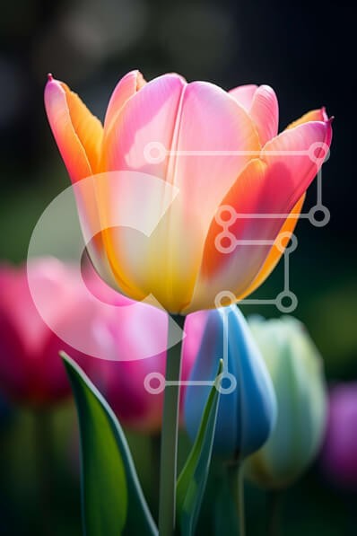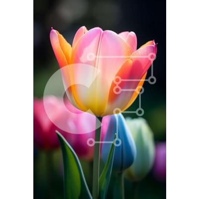 Υπάρχει δυνατότητα προσωποποίησης με δική σας φωτογραφία και προσαρμογής διαστάσεων κατόπιν παραγγελίας. Το συγεκεριμενο puzzle παρουσιαζει Αυτή η εικόνα δείχνει μια κοντινή άποψη ενός πολύχρωμου λουλουδιού τουλίπας με πέταλα διαφορετικών αποχρώσεων του ροζ, του κίτρινου και του πορτοκαλί. Τα πέταλα είναι διατεταγμένα σε συμμετρικό σχέδιο, με τα κίτρινα πέταλα στο κέντρο και τα ροζ και πορτοκαλί πέταλα να ακτινοβο