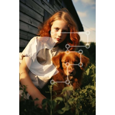 Υπάρχει δυνατότητα προσωποποίησης με δική σας φωτογραφία και προσαρμογής διαστάσεων κατόπιν παραγγελίας. Το συγεκεριμενο puzzle παρουσιαζει Η εικόνα δείχνει μια νεαρή κοπέλα να κάθεται στο γρασίδι δίπλα στον σκύλο της. Το κορίτσι φοράει κόκκινα μαλλιά, τα οποία έρχονται σε αντίθεση με το καφέ χρώμα της γούνας του σκύλου. Ένα μικρό ξύλινο κτίριο φαίνεται πίσω από το κορίτσι, υποδηλώνοντας ότι μπορεί να ζει σε μια π