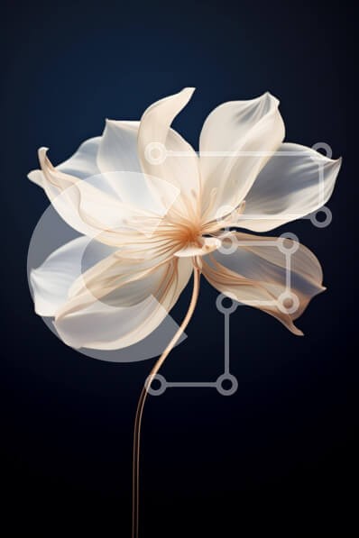 Υπάρχει δυνατότητα προσωποποίησης με δική σας φωτογραφία και προσαρμογής διαστάσεων κατόπιν παραγγελίας. Το συγεκεριμενο puzzle παρουσιαζει Αυτή η εικόνα παρουσιάζει ένα ενιαίο λευκό λουλούδι τοποθετημένο σε πρώτο πλάνο σε σκούρο φόντο. Το λουλούδι φαίνεται να είναι ψηφιακά δημιουργημένο ή χειροποίητο και μπορεί να είναι μέρος μιας σύνθεσης λουλουδιών. Τα ευαίσθητα πέταλά του και οι περίπλοκες λεπτομέρειες το κάνο