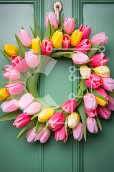 Υπάρχει δυνατότητα προσωποποίησης με δική σας φωτογραφία και προσαρμογής διαστάσεων κατόπιν παραγγελίας. Το συγεκεριμενο puzzle παρουσιαζει Η εικόνα παρουσιάζει ένα στεφάνι από ροζ, κίτρινες και πράσινες τουλίπες που κρέμονται στην μπροστινή πόρτα. Αποτελείται από διάφορα είδη λουλουδιών, όπως τριαντάφυλλα, γαρύφαλλα, μαργαρίτες ή νάρκισσους, σηματοδοτεί την άφιξη της άνοιξης. Ένα μοναδικό puzzle που συνδυάζει πο