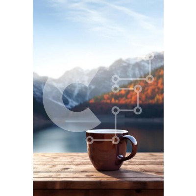 Υπάρχει δυνατότητα προσωποποίησης με δική σας φωτογραφία και προσαρμογής διαστάσεων κατόπιν παραγγελίας. Το συγεκεριμενο puzzle παρουσιαζει Αυτή η εικόνα παρουσιάζει μια καφέ κούπα καφέ που στηρίζεται σε ένα ξύλινο τραπέζι με μια γραφική θέα σε μια ήρεμη λίμνη και βουνά στο βάθος. Τα βουνά είναι εν μέρει καλυμμένα με χιόνι, ενώ στο πρώτο πλάνο εμφανίζεται ένα ζωντανό φθινοπωρινό τοπίο με πολύχρωμα δέντρα. Ο ουρανό