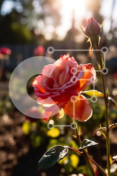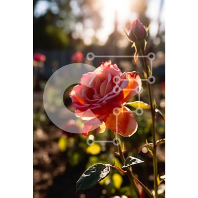 Υπάρχει δυνατότητα προσωποποίησης με δική σας φωτογραφία και προσαρμογής διαστάσεων κατόπιν παραγγελίας. Το συγεκεριμενο puzzle παρουσιαζει Αυτή η εικόνα είναι μια κοντινή λήψη ενός ροζ τριαντάφυλλου σε πλήρη άνθιση, που στέκεται ψηλά σε έναν κήπο το ηλιοβασίλεμα. Ο ήλιος λάμπει πίσω του, ρίχνοντας μια ζεστή λάμψη στα πέταλα και το στέλεχος, που απλώνονται ορθάνοιχτα για να αποκαλύψουν τις περίπλοκες λεπτομέρειες