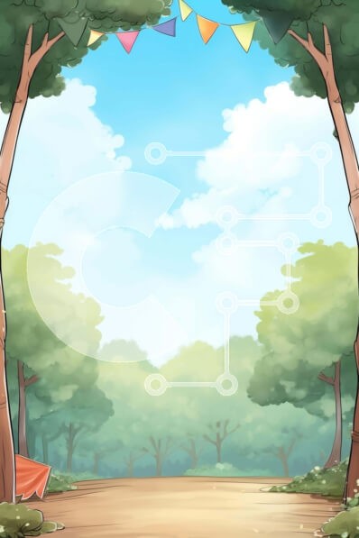 Υπάρχει δυνατότητα προσωποποίησης με δική σας φωτογραφία και προσαρμογής διαστάσεων κατόπιν παραγγελίας. Το συγεκεριμενο puzzle παρουσιαζει Αυτή η εικόνα απεικονίζει μια σκηνή που μοιάζει με κινούμενα σχέδια στο δάσος με πολλά δέντρα και ένα ανοιχτό μονοπάτι που οδηγεί στο δάσος. Πολύχρωμες σημαίες κρέμονται από τα δέντρα, υποδηλώνοντας μια εορταστική ατμόσφαιρα. Μια μικρή σκηνή κοντά στην είσοδο του πάρκου προσθέ