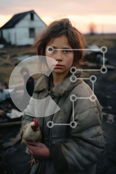 Υπάρχει δυνατότητα προσωποποίησης με δική σας φωτογραφία και προσαρμογής διαστάσεων κατόπιν παραγγελίας. Το συγεκεριμενο puzzle παρουσιαζει Η εικόνα απαθανατίζει ένα νεαρό κορίτσι να στέκεται μπροστά σε ένα εγκαταλελειμμένο σπίτι, κρατώντας το κοτόπουλο της. Τα συντρίμμια που είναι διάσπαρτα γύρω υποδηλώνουν τις συνέπειες μιας φυσικής καταστροφής όπως πλημμύρες ή ανεμοστρόβιλοι. Ένα μοναδικό puzzle που συνδυάζει