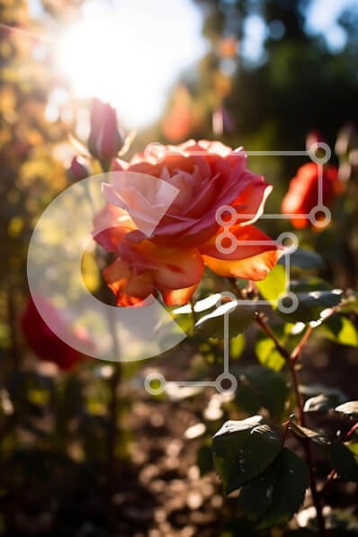 Υπάρχει δυνατότητα προσωποποίησης με δική σας φωτογραφία και προσαρμογής διαστάσεων κατόπιν παραγγελίας. Το συγεκεριμενο puzzle παρουσιαζει Αυτή η εικόνα είναι μια κοντινή λήψη ενός κόκκινου τριαντάφυλλου σε έναν κήπο στο ηλιοβασίλεμα. Το τριαντάφυλλο είναι σε πλήρη άνθιση, με ζωηρά πέταλα και αρκετά πράσινα φύλλα ορατά γύρω από τη βάση. Το στέλεχος είναι μακρύ και λεπτό και η εικόνα λαμβάνεται από χαμηλή γωνία, κ